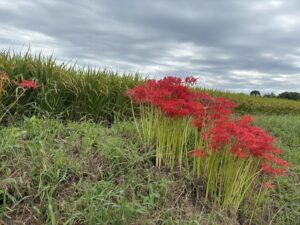先日、愛犬の散歩をしていたら、田んぼの土手に彼岸花を見つけました。この花たちも死ぬほど暑い夏を過ごしてきたんだなぁ、秋の訪れを感じてきれいな花を咲かせているんだなぁ、と思うととても愛おしい気持ちになりました。